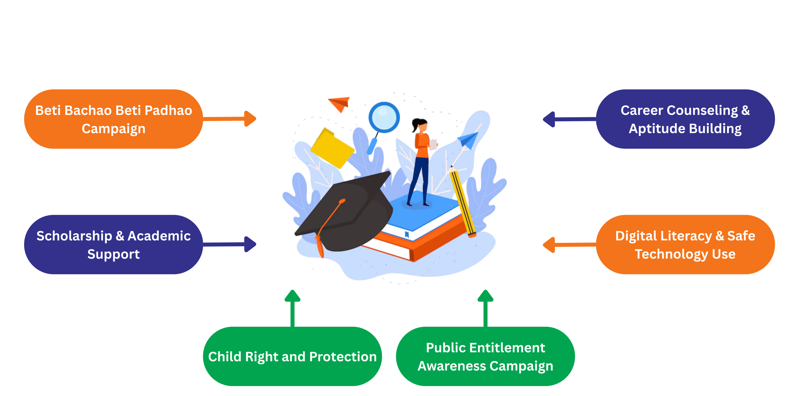 Foundational training in computer applications, internet navigation, and responsible digital behavior. These sessions aim to narrow the digital divide while promoting safe online engagement, especially for rural adolescents.